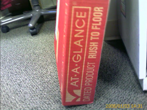 This picture is from a few months ago. New desk calendars arrived at Group Health to go with the new year. I found it funny that it said on the side of the box "rush to floor".